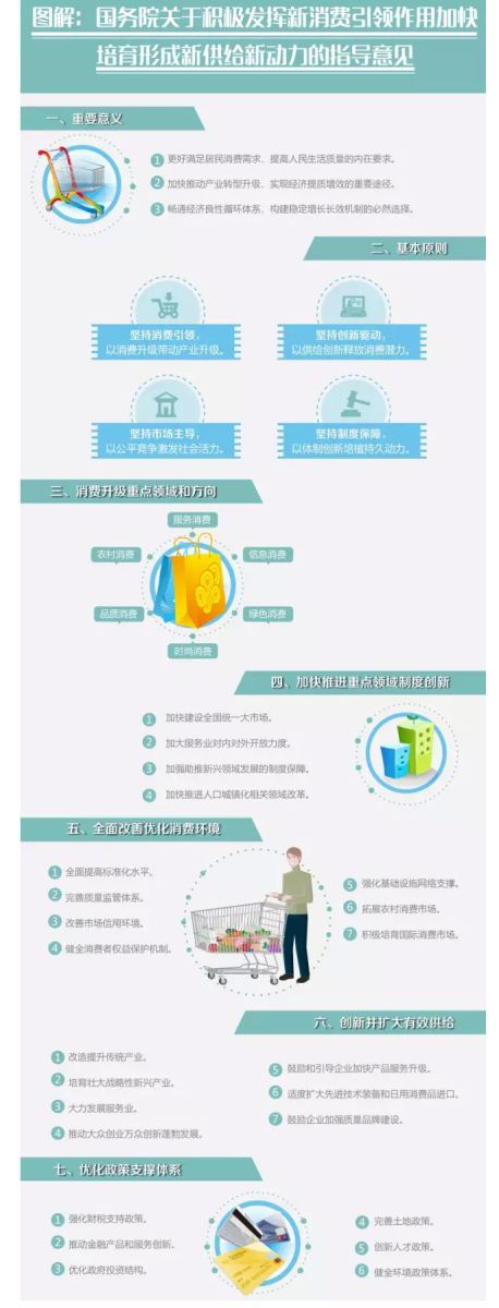 11月22日,国务院发布《关于加快发展生活性服务业促进消费结构升级的指导意见》(下称《消费升级指导意见》),提出增加服务有效供给,扩大服务消费需求👷🏽,加快发展生活性服务业。11月23日,国务院发布《关于积极发挥新消费引领作用加快培育形成新供给新动力的指导意见》(下称《新消费指导意见》),部署消费升级来引领产业升级,明确了坚持消费引领🏋🏻♀️,以消费升级带动产业升级🪔;坚持创新驱动🧝🏻,以供给创新释放消费潜力;坚持市场主导,以公平竞争激发社会活力;坚持制度保障,以体制创新培植持久动力🆖。并通过制度创新、技术创新、产品创新来增加新供给🤦🏻♂️,满足创造新消费,形成新动力。