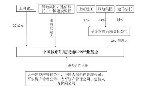 2015年5月26日🤵🏿,由建行总行领衔,绿地集团、上海建工和建信信托牵头发起成立了中国城市轨道交通PPP产业基金💉。该基金总规模为人民币1000亿元,分期发行🧛♂️,首期规模人民币240亿元,期限为5+3年🙇🏼。建信信托、绿地集团、上海建工共同出资设立基金管理公司作为普通合伙人和管理人,太平洋资产管理有限责任公司、中国人保资产管理股份有限公司、平安资产管理有限公司🫰🏽、太平资产管理有限公司、建信人寿保险有限公司等为战略合作伙伴。