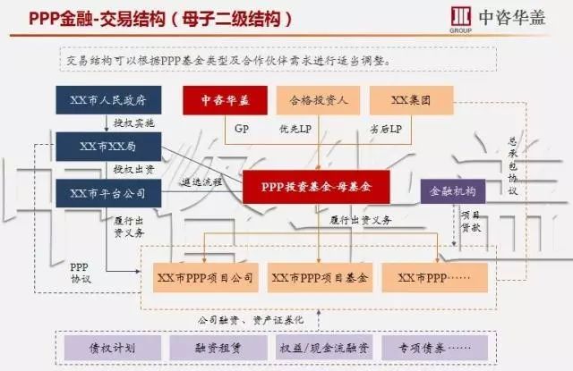 首先讲母基金的方式,它由中咨华盖与地方政府(或产业集团)联合发起🖖,针对若干个相同或不相同的PPP项目。