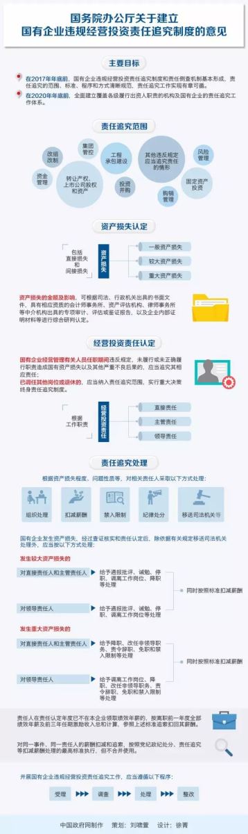 “在2017年年底前基本形成国有企业违规经营投资责任追究制度和责任倒查机制,在2020年年底前全面建立覆盖各级履行出资人职责的机构及国有企业的责任追究工作体系,形成职责明确、流程清晰📡、规范有序的责任追究工作机制。” 到2020年,要能够做到“对相关责任人及时追究问责🏄🏽♂️🙎♂️,国有企业经营投资责任意识和责任约束显著增强”。将此前分散的没有明确体系的国企违规经营投资追责问题做了系统性的制度规定。