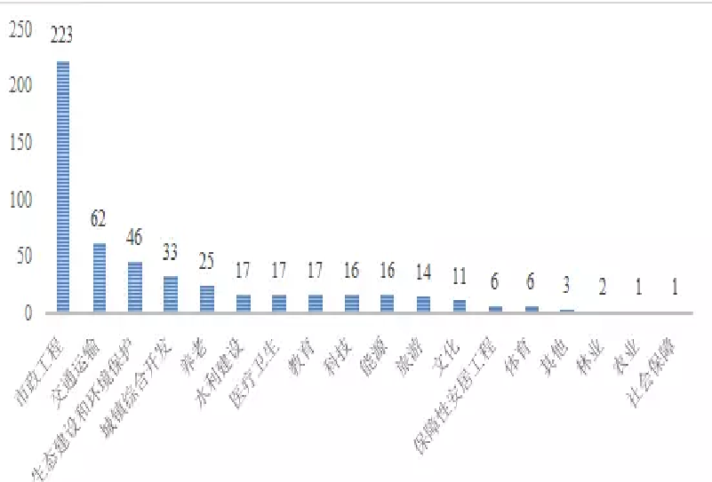 市政工程类项目在本批示范项目中占绝对领先地位,共223个项目🧎🏻‍♀️,占全部项目数量的43.22%,其中,市政道路🚣🏿‍♀️🙋🏻‍♀️、污水处理、垃圾处理、管网🤛、供水五个类型的项目占市政工程类项目的四分之三以上,体现了当前我国对基础设施建设的需求仍然较大。