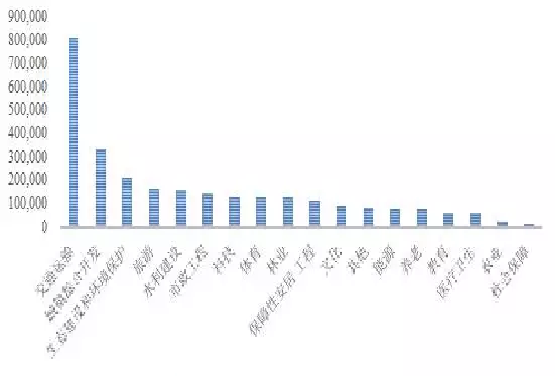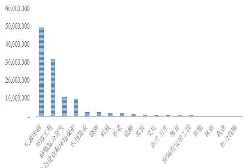 6、不同行业投资额差距大🐺,交通运输类项目一枝独秀。从项目总投资额度来看,交通运输类项目的总投资最大🃏,为49,269,320万元,平均投资额为807,694万元𓀘;投资额排名前50的项目中,26个项目为交通运输类项目;投资额在100亿元以上的22个项目中❎,15个为交通运输类项目。