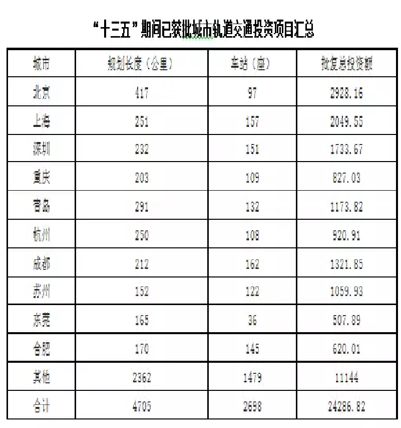 根据城市轨道交通协会统计,全国44座城市已经获批城市轨道交通建设投资总额24287亿元。 “十三五”期间🔎🧘🏿♂️,我国将进入轨道交通建设的高峰期,预计到2020年📳,国务院批准修建城市轨道的城市数字将达到50个🏊🏻♀️,我国城市轨道交通建设总里程达到5000公里,建设投资总额有望突破2.5万亿元,未来五年投资额年复合增长率有望达到15%🤲🏽。
