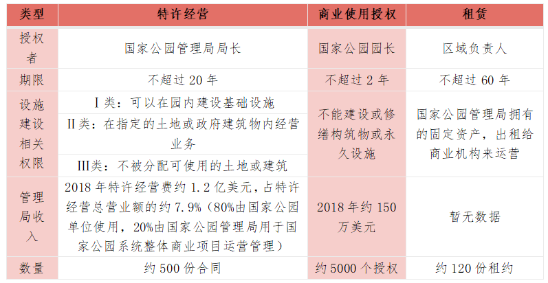 美国国会于1998年更新了《特许权管理改进法案》(1998年)及实施条例,美国国家公园由国家公园管理局(NPS, National Park Service)统一管理。《法案》对国家公园的各类项目实施特许经营分类管理,项目被分为特许经营、小型商业利用授权、租赁三种形式🏃🏻➡️🧑。