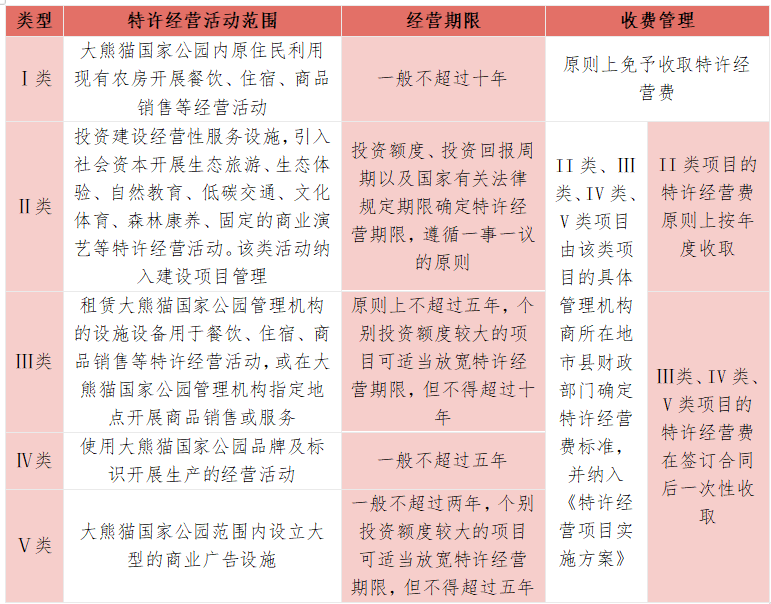 资料来源:《大熊猫国家公园特许经营管理办法(试行)》(2020)