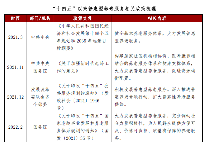 自进入“十四五”👨🏿💼🧔🏽♂️,我国明显加大了对养老的重视🎗,近两年多次发文强调要推动形成居家社区机构相协调、医养康养相结合的兜底性、普惠型🦹🏿、多样性的养老服务体系,做好老年人的经济保障、服务保障和精神关怀。基于此,政策先行必然是大方向。