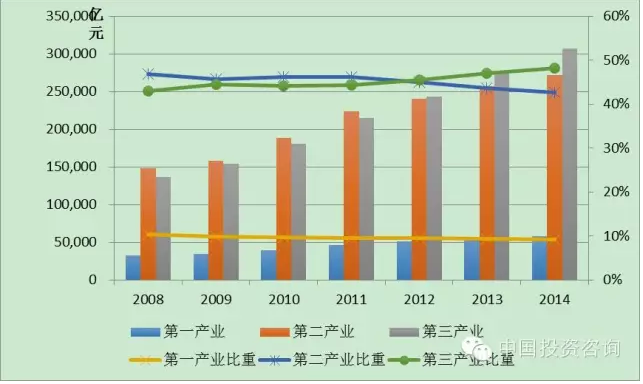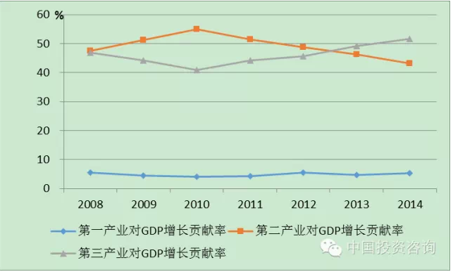 图2 2008-2014年三大产业对GDP贡献率变化情况